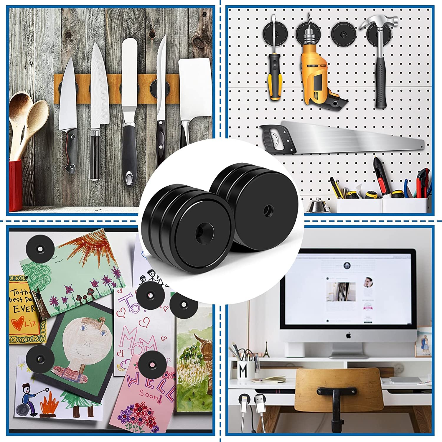 Amplio uso: los imanes de disco redondo son increíblemente versátiles y pueden simplificar tu vida cotidiana, tanto en casa como en el trabajo, son ideales para colgar y sostener objetos de metal en una variedad de entornos como el hogar, taller, oficina y proyectos de carpintería, y ahorran espacio valioso mientras permiten un acceso fácil y rápido a las herramientas